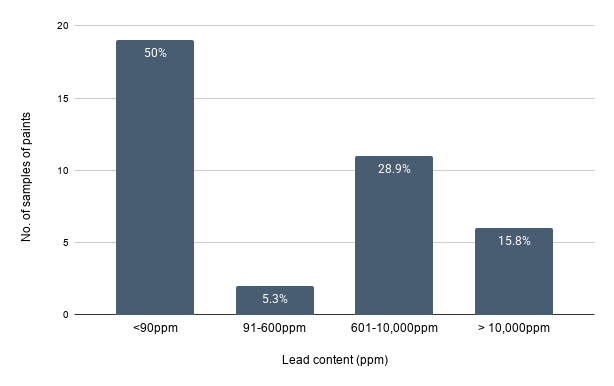 A large proportion of paints contained extremely high levels of lead: